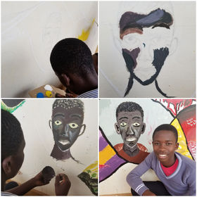 In the gallery installation, my own high school art students re-created the outlines of the Musana mural declaring “It’s so cool to make the same thing that the Musana students made, only this one is empty!” Musana means “light” or “sunshine” in Ugandan language. Indeed, the world is empty without Musana.